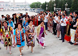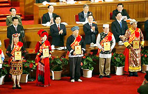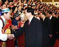 President Hu Jintao Friday called on the nation to make concerted efforts to promote ethnic unity and social and economic development in areas inhabited by ethnic minorities for common prosperity of the nation. The issue of ethnic minorities "has always been a major one that we must handle well in the building of socialism with China's own characteristics" and a major work that has a bearing on the overall situation of the cause of the Party and people," he said in his keynote speech at the central conference on the work of ethic affairs, held in the Great Hall of the People in central Beijing. Hu, also general secretary of the Communist Party of China Central Committee, said that the Party has opened up a correct road to resolve the ethnic issue with China's own characteristics and enormous achievements have been made in promoting ethnic unity and progress. The equal, unitary, mutually-supporting and harmonious relations among all ethnic groups in China have been constantly consolidated as people of different ethnic groups have participated in managing state affairs, Hu told the conference. The system of regional ethnic autonomy has been even more perfect. Minority people have their legal rights protected and have made historic progress in the economic and social development. China has 56 ethnic groups and more than 100 million ethnic minorities, and the ethnic autonomous areas account for 64 percent of the nation's land territory.
