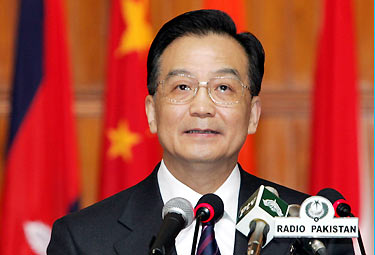 Premier Wen Jiabao delivers a keynote speech at the Fourth Foreign Ministers' Meeting of Asia Cooperation Dialogue (ACD) in Islamabad April 6, 2005.