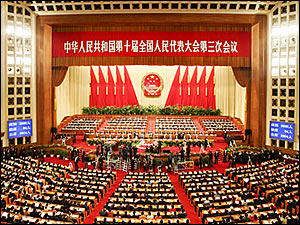The 10th National People's Congress convened its Third Session in Beijing on Saturday morning. Premier Wen Jiabao delivers a government work report. In his report, Wen reviewed the social and economic development in 2004 and outlined the work tasks for the year 2005.