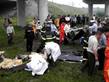 The bus broke through the fencing and fell from the bridge, plunging 7.6 meters down to the ground.