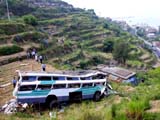 After losing control, the bus glided for about 150 metres along Huangqi Road before it hit the shoulder and fell for more than 60 metres down a slope on the side of the road.