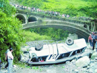A bus carrying 20 passengers tipped over into a roadside river around 17:20 PM Wednesday, when it was speeding on a highway to Shifang City, which is under the jurisdiction of Deyang, leaving four people killed immediately and another four died later in hospital despite intensive rescue efforts. The remaining 12 passengers were injured, and four of them seriously. They are now all in hospital for further treatment.