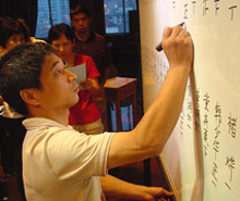 "Usually I am timid and overcautious," Wu Fasong said, blushing with anxiety. "I have to make a speech before so many people, and I'm nervous."