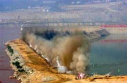 The 1,075-meter-long downstream cofferdam was blasted away in 9.5 seconds, without damaging the main dam and buildings.