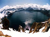 The 9.8-square-kilometre Tianchi Lake is 373 metres deep in its deepest part and is China's deepest volcanic lake. The legend of some sort of monster has been around for more than a hundred years.