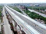 It will take only eight minutes to travel between the downtown area to the airport by the maglev train, which runs at a speed of more than 400 kilometers per hour. A test operation is scheduled for early next year.