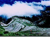 The terraced fields, built by local farmers of different ethnic groups from the Yuan Dynasty (1271-1368) to Qing Dynasty (1644-1911), spread 500 meters from the foot of Mount Longji to the mountaintop. The spectacular landscape has made it a popular scenic site.