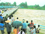 Though the opening of sluice gates at the Wangjiaba dam has eased the level in the Huaihe River, the continuous rainfall in the upper reaches kept the water level above the safety line, according to the provincial flood control and drought relief headquarters.