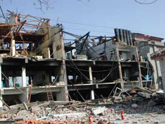 The skeletal remains of a three-storey building in a chemical factory stand after an early morning explosion on Friday in Dingzhi Town of Changsha, capital of Central China's Hunan Province.
