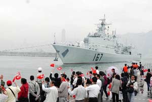 This was the biggest scale PLA Navy visit in Hong Kong since Hong Kong returned to the motherland. In November 2001, a navy task group composing of guided missile destroyer Shenzhen and multi-purpose replenishment ship Fengcang made a three-day port call to Hong Kong.