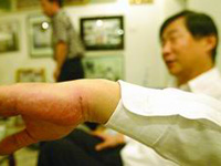 "I owe nothing, I won't sign," said Wu. One man cut Wu's left wrist.