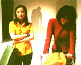 In several scenes, the activities of the protagonists take place in front of the shadows of some figures on a folding screen. The images on the screen, projected from behind it, seem to present a subtext through their repetitive actions. Maybe this gives a true picture of the domestic lives of many people today.