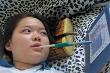 After her first try, Tian made painstaking efforts to master the computer. In the beginning, she used wooden chopsticks, but those left broken bits in her mouth. She turned to plastic chopsticks, but they were too slippery to hold. Then she tried an ivory chopstick, which worked the best. But every time Tian used it to tap the keyboard, she still needed all her strength, and it wasn't long until her neck hurt terribly.