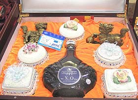 Hence, inside the luxury containers, sometimes made from rare wood, glass or high-quality paper, French wines, watches, tea sets and even pearls can today be found alongside the humble mooncake.