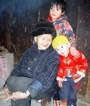 The picture, taken on February 27, shows that 108-year-old Huang Maniang and her great-grandson (behind) and great-great-grandson (right) enjoy a happy life in the Bama Yao Autonomous County.
