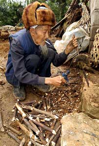 Zhu Yingzhou (L) and his wife Xiong Fazhen pose in the village of Fengtang in Qingzhen city in southwest China's Guizhou Province May 24, 2005. Zhu, 102, and Xiong, 103, have been married for nearly 90 years, according to local police. Xiong married Zhu when she was only 13. They have three sons and three daughters, with the oldest daughter now 81 years old. Picture taken May 24, 2005.