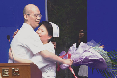 "We were very depressed at the start, feeling sorry for the SARS patients while worrying about getting infected ourselves," says 23-year-old nurse Liu Haiyan from Northwest China's Xinjiang Uygur Autonomous Region, who came to Beijing at the time as medical backup. "Although we only worked six-hour shifts, the workload was unprecedented. We had to wear three layers of protective clothing as well as goggles and gloves." The heat they endured clad in so much gear became intolerable as summer approached.