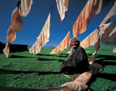 Before visiting Shiqu, home of the Sun Tribe, my knowledge of the place was pretty much limited. I knew it was the highest, largest, and most remote county in Sichuan Province, and the home of Zhaxika Grassland, the largest grassland in the Kangba Tibetan area. I knew "Zhaxika" was the Tibetan name of Shiqu, and that it meant "the riverside of Yalong." Located at the juncture of Sichuan and Qinghai Provinces and the Tibet Autonomous Region in the southeastern part of the Qinghai-Tibet Plateau, it rises 4,000 meters above sea level and occupies an area of 25,141 square kilometers, 90 percent of which are covered by grass. It is 1,070 kilometers from Chengdu, the capital of Sichuan Province.