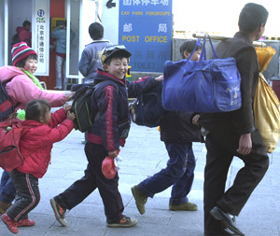 A worker and his four children are busy catching their train. To date, the human current back home for the upcoming Spring Festival reunion (January 22) hit a new peak, and the Ministry of Railways hiked the ticket price by 15-20 percent starting from Wednesday.