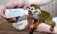 The baby squirrel monkey in the picture was born in the Shanghai Zoo a month ago. Squirrel monkey, a kind of gregarious animal, originates from South America and lives on insects and fruits. Currently, the artificially raised baby is very healthy with its weight reaching 165 grams already.