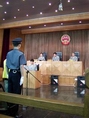 At the new building's hall for filing cases, people first get a queue number from a machine and can see information on a screen about the situation in the reception rooms.