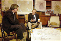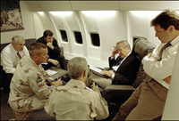 CNN television showed a military convoy supposedly escorting the secretary drove on an uphill highway into a castle on top the mountain, where used to be a palace of Saddam and now used as US military base.