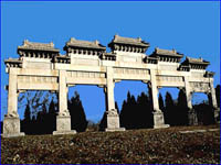 Located in a 40-square-kilometre area surrounded by a cluster of hills north of downtown Beijing, Ming's Thirteen Tombs hold the remains of 13 of the Ming Dynasty's 16 emperors, 23 empresses, many imperial concubines, princes and princesses, and numerous imperial slaves.