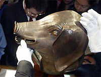 The "swine head'' was part of a series of copper sculptures of men with animal heads that represent the 12 animals in the Chinese zodiac. It stood by a fountain built at the palace in 1760.