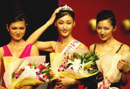 Beauty queen Guan Qi wears her crown after becoming the new Miss China September 21, 2003.