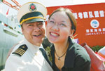 The picture shows that Yuan Shaohong, captain of the research vessel Xuelong (Snow-Dragon) that carried China's second scientific expedition to the North Pole, embraces his wife in Shanghai on Friday. After 74 days and 13,985 nautical miles, the team returned home with valuable research on the North Pole.