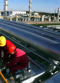 Workers on the Changqing Gas Field in Northwest China's Shaanxi Province inspected the system of the nation's west east gas pipeline project Monday, October 6, 2003. The pipeline originates from that field. Tuesday, Shanghai received the first natural gas supply transferred via the billion-dollar project.
