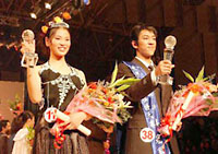 At the final contest in east Jiangsu Province, Li Xiaofei, 17, a woman from the northeastern Liaoning Province, and Si Gaofeng, 21, a man from the central Hubei Province, beat their rivals to win in swimming suit, casual wear, and evening dress displays.