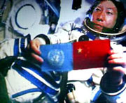 Yang Liwei: When the spaceship was launching, I had a strong feeling of high-gravity with the biggest moment reaching 5G. When the spaceship separated from the rocket, I suddenly got a feeling of soaring to the sky due to zero gravity, while I still lay half on the chair. By doing so, the fixed camera could shoot my whole body and people could see me on the screen at the Beijing Aerospace Command and Control Center. In fact, during the flight, I for many time floated in the cabin, for instance, when I was shooting outer space. Besides, during the whole flight, I felt the air was very comfortable in the cabin. The temperature is good, about 22 degree centigrade. There were very few floaters. One hour and 37m after the spaceship entered orbit, I took my first meal in outer space. Then, I had two meals every seven or eight hours later, including little moon cakes, fish bolus and many others. In a word, I was pretty calm and in good condition during the flight. I fulfilled my work entirely in line with the working procedure. Sleep and my appetite were good. Moreover, I also wrote down seven of eight papers of experience according to actual flight situations. In the next several days, I'll sort out the minutes of the notes and give them to my colleagues. The experience will be conducive to manned space flights in the future.