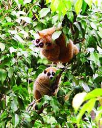 Two lesser sloth monkeys (Nycticebus pygmaeus) Shasha and Tiantian were put on outdoor display in Beijing Zoo for the first time recently.
