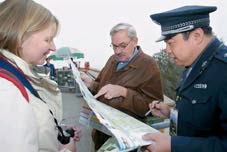 Now Liu is able to speak twelve or thirteen foreign languages in simple dialogues. Some visitors from Poland are quite happy to see that the policeman can speak a little Polish.