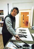 "Simplicity" is how Sun sums up his style. He invariably sticks to three colors, or more correctly shades, for backgrounds -- black, white and gray. "Otherwise the picture looks totally messed up," he says.