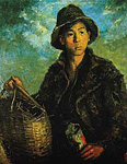 In his early years, Chan would render the face with small touches of modulated flesh colors from a dull gray to dull rose. The lines of the forehead, nose, cheeks and chin are picked out with loose strokes of tinted white tones as highlights. Later his palette became progressively brighter, the brushstrokes bolder and freer.