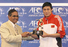 The defender, who was named 2001 Asian Player of the Year last week, remains China's best-known star outside his homeland due to a successful three-year stint at Crystal Palace beginning in November 1998.