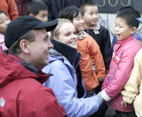 The young members at the SOS-Children's Village in Tianjin were greatly delighted by the presence of two young adventurers on Monday, who had journeyed for six months all the way from Amsterdam.