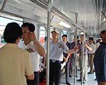 The 28th saw the first track train for Shanghai Pearl Line roll off the assembly line at Nanjing. A joint effort of cooperation by Nanjing Puzhen Vehicles Plant with French Alstom as was told, the train, outstanding for its unique personality designs of seats and armrests, presents a trendy outer look. New track trains as ordered are under construction and these will be used for the Pearl Line, to replace those of old on Shanghai's track lines.