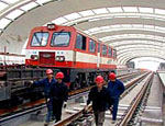 Pulled by locomotives, a total of 30 electrical trains in 10 groups underwent testing at Huilongguan yesterday.