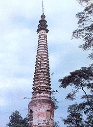 Situated on Mount Longshan one kilometer east of the county town of Zhongxiang, it is said to have been built in 880 in the Tang Dynasty. It was destroyed later, but reconstructed in 1389 in the Ming Dynasty. The present pagoda is a Ming structure.
