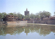 The roofs become progressively wider, creating the impression of an umbrella. The steeple is a small stupa-style Lamaist dagoba ten meters high. The pagoda?s roof is a spacious platform surrounded by 1.2-metre-high brick balustrades. People can go to the top to enjoy the view.