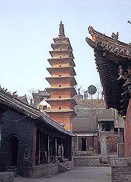 Behind the main hall of Fengxue Temple Qizu Pagoda was built in honour of an eminent monk in 738 during the Tang Dynasty and the name was granted by Emperor Xuanzong.