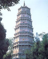 Construction of the pagoda began in 1307 during the Yuan Dynasty and was completed in 1315. On the outer walls of the pagoda are eight tablets with inscriptions about the pagoda's history. The octagonal, seven-storey structure of brick and stone is forty-three meters high. The pagoda walls were constructed with stones inside and coated with bricks outside. Every storey has brackets, balconies and pent roofs. A staircase inside the pagoda leads to the top, where visitors can enjoy a full view of Wuhan and its surroundings.