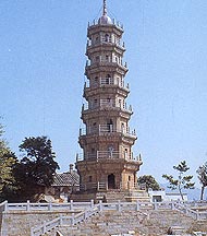 The octagonal, seven-storeyed stone pagoda is 31.5 meters high. It towers over the port. A lot of lantern niches still remain on the outer walls of the pagoda. They indicate that the pagoda served as a beacon for ships. No indication of a role in Buddhism has been found.