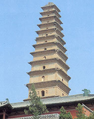 In 1555 during the reign of Emperor Jiaqing of the Ming Dynasty, a severe earthquake occurred, and the temple was wrecked. It was reconstructed on the base of the original framework of the damaged pagoda around 1560. Despite reconstruction, the pagoda has retained part of its Tang Dynasty style.