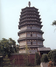 Located west of Longxing Temple in downtown Zhengding, according to historical accounts, the pagoda was first built in 860 during the Tang Dynasty and went through some repairs during the Song, Yuan, Ming and Qing dynasties. However, according to the structure of the existing pagoda today, it is a building between the Song and Kin dynasties. Repairs during later times did not change its original style.