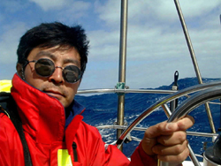 He arrived in Wellington, New Zealand, on April 9, 2002 after sailing across three oceans, passing four continents and 26 countries. The feat made him the first ethnic Chinese to sail solo around the world.