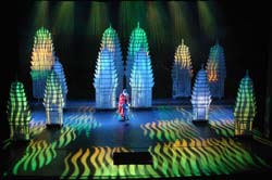 Cut to the present day, the tale is told in the Red Theatre in the Chongwen District of China's capital Beijing amid a colorful musical extravaganza of lights, dance and amazing fight scenes.